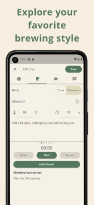 • Timer and Stopwatch: Follow a preset time or simply brew with intuition