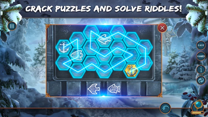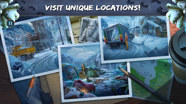 Traverse through the snowy landscapes of a small Canadian town filled with puzzles and hidden objects. No myths and monsters remain hidden as you find hidden objects behind eerie sightings & hidden journey mysterious occurrences!