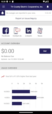 Tri-County Electric Cooperative presents a free mobile app, MyTriCountyTX, giving our members quick and easy access to online accounts.