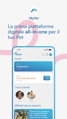 Scegli MyVet per offrire al tuo animale domestica una cura a 360°, supportata dalla migliore tecnologia e dalla consulenza di veri professionisti. Scarica l'app e inizia oggi la rivoluzione del suo benessere!