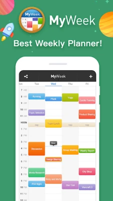 "MyWeek" is a sophisticated app that helps you plan your weekly schedule. Watch Rick & Morty every Friday night? Movies on Tuesday? Go out to see the exhibition on Saturday morning? Play Warcraft III Remake Sunday? It's as simple and convenient as your most familiar schedule.