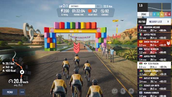 Explore beautiful worlds – Hudayriyat, California, Belgium, Colombia, Australia, AlUla, and Arabia – based on real-life locations from across the world. From challenging climbs to fast flats, lush jungles, and sparse deserts to dense cities and rolling countryside, MyWhoosh has it all.