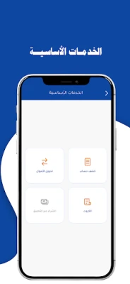 - معرفة الرصيد وطلب كشف على الحساب المصرفي. - طلب سلفة. - خدمة تحويل الأموال من حساب الى حساب اخر . - خدمة تحويل الأموال من حسابات العملة . - خدمة طلب المرابحات الإسلامية. - خدمة دفع الفواتير. - خدمة طلبات البطاقات المصرفية. - خدمة طلبات الصكوك. - خدمة شراء الكروت. - خدمة المنافع الموصوفة بالذمة.