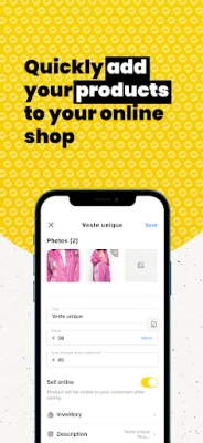 Create your online store in less than 5 minutes from your smartphone, without any design or coding knowledge.