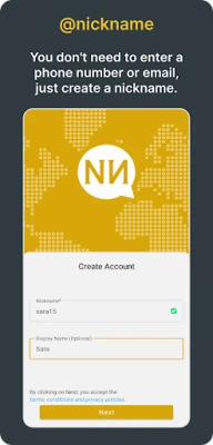 Unique @NICKNAME: Identify yourself without revealing your phone number or name.