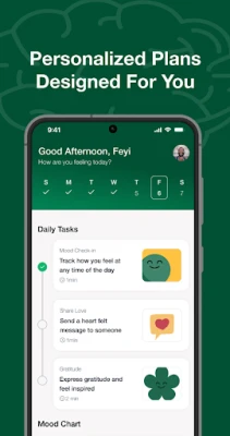 Anytime, Anywhere: Access support whenever you need it through a therapy session or a quick mood check-in.