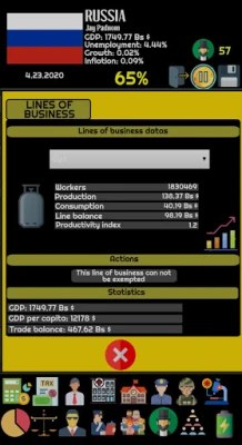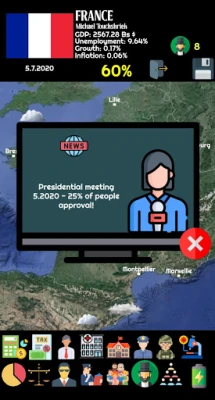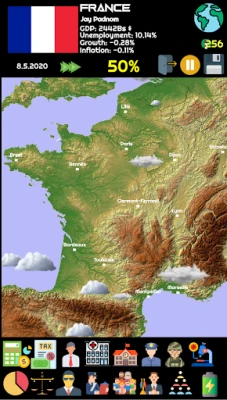 -----------------Message from dev----------------------------------------------------------- I am not a professional developer. Nation Simulator is a game by an enthusiast for enthusiasts. I develop with Construct 3, which does not allow me to take into account all the devices with which the game could be problematic. Before any purchase, I can only suggest you to test the compatibility with France. Beyond any challenge, I invite you to play with roleplay. Have a good time.