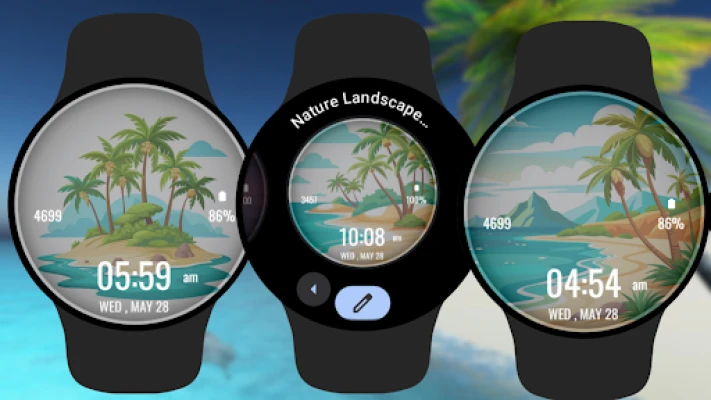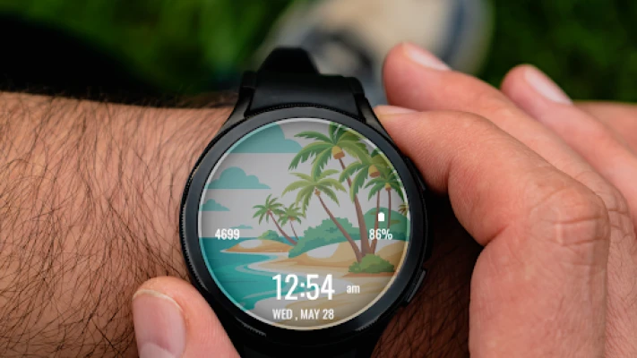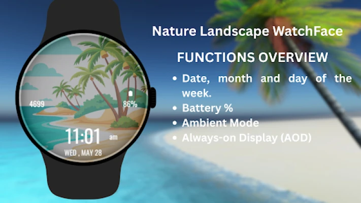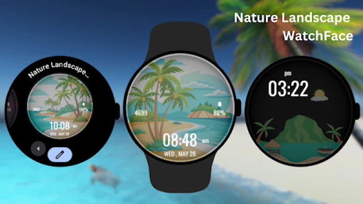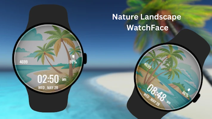 Escape to paradise every time you check your wrist with the Nature Landscape Watch Face for Wear OS. Featuring a tranquil tropical beach with lush palm trees and gentle waves, this watch face brings a calm, relaxing vibe to your day. Ideal for nature lovers and anyone who appreciates scenic beauty, it also delivers essential information like time, date, battery level, and step count—all in a beautifully designed digital layout.