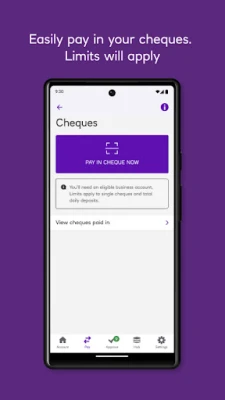 Deposit your cheques up to the value of £1k by simply taking a photo and confirming the details before