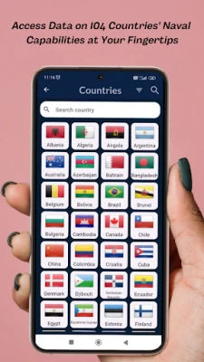 The app data includes technical information and numbers of warships and naval aircraft, submarines, unmanned systems, missiles, weapons, sensors, naval strategy, submarine war, amphibious, naval combat, defense news, marine vehicles, amphibious vehicle, naval battleship, navy fighter, frigates and equipment of 92 countries and the ones in development as well.