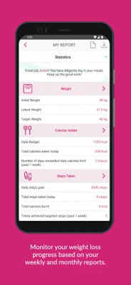 Log your daily meals, activities and weight loss progress with nBuddy! Set your weight loss target and keep track of your caloric intake and expenditure. Access weekly, monthly, and half-yearly reports to see how much you’ve progressed and how far you’ve achieved your goals.