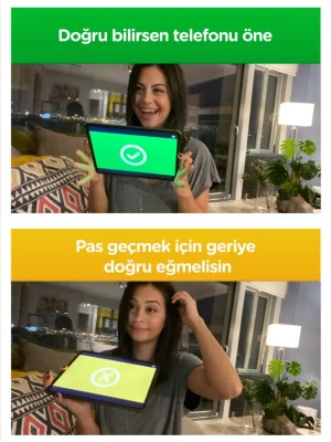 Tamamı Türkçe 30000+ kelime ile Guess Up , Heads Up , Ben Kimim ve Tabu tarzı kelime oyunu! İster 2 kişi, ister 3 kişi, ister 4 kişi istersen çok daha fazla kişiyle oynanan oyun.