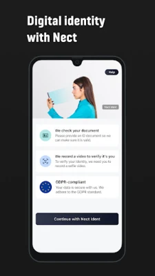 Once your identity has been successfully verified by Nect, you can continue your registration process in our partner company's app or on their website.