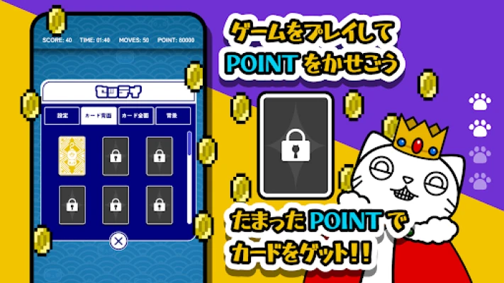 - クリアすることでポイントがたまるので、新しいねこカードを開放できます。