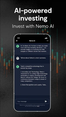 Nemo AI, one of the first GPT powered financial assistants, will give you daily stock portfolio insights, analyse market trends and social sentiments and share stock investing opportunities - so you can diversify your portfolio with confidence. Get instant help for decisions on stocks, shares, and more.