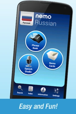 Nemo is designed to start you speaking the most useful words in Russian immediately and confidently. With millions of downloads from around the world, Nemo is now available for Android phones and tablets.