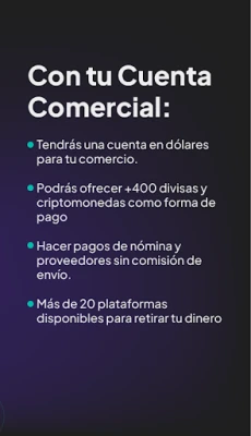 Cuenta comercial disponible para negocios.