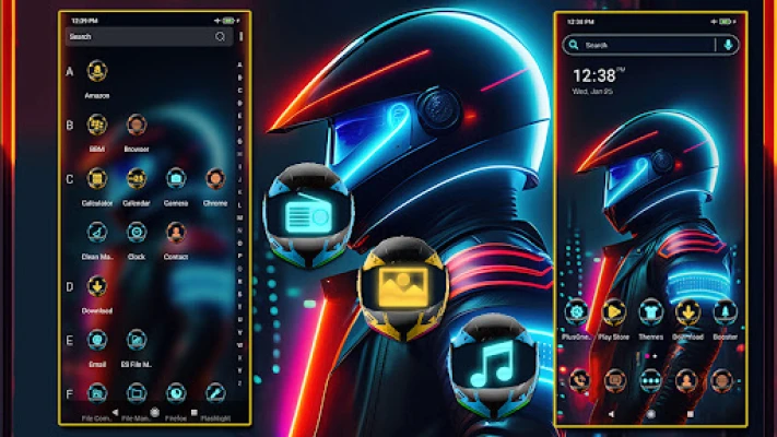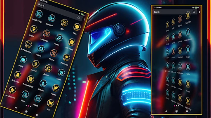 With our launcher theme, the Neon Bike Rider Theme Launcher you get a fully customized phone interface as this app will change the wallpaper.