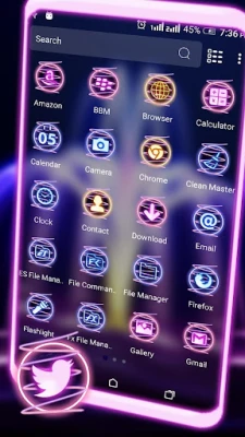 The Neon Fountain Theme with Lovely wallpaper & glowing icons will make your phone screen look more fantastic,