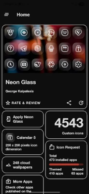 Neon Glass is an icon pack. It is not a stand alone application, you need a third party launcher to apply it.