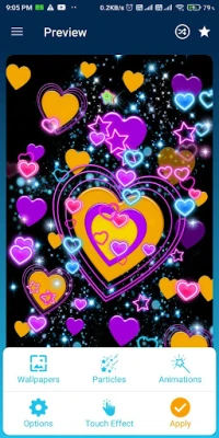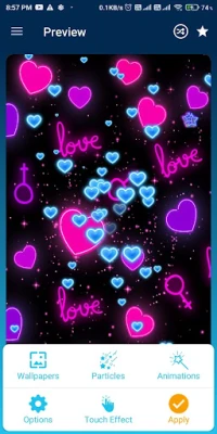 Glowing neon hearts will fall over your screen. This is such a cool app you will like it for sure! The hearts come in various colors like pink and blue with glowing borders and disco colors with luminous styles.