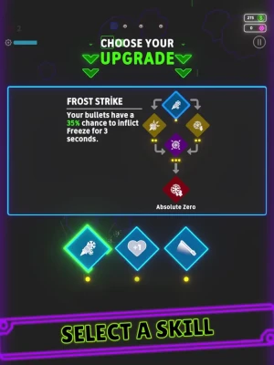 Upgrade, shoot, survive! Unleash your skills in the neon battle arena!