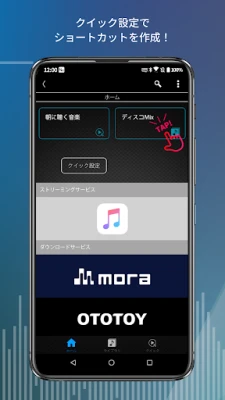 ハイレゾ・音楽配信サイト「mora」「OTOTOY」で購入した音楽をNePLAYER Liteへ直接DLして再生することが可能です。あらかじめ各サービスで楽曲を購入し、直接NePLAYER LiteへDLして視聴することができます。PCで同期作業をせず簡単に楽曲追加が可能です。