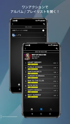 自由にプレイリストを作成し、またそのプレイリストの書き出し(エクスポート)が可能です。書き出したプレイリストは他端末のNePLAYERにて読み込み(インポート)が可能です。