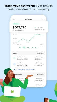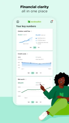 Track your budget, finances and credit - all in one place and all for free. Get the insights you need to make the most of your money. View all your financial accounts on one screen for easy, holistic monitoring. Then zoom in on the details of your cash flow, expenses, credit score and net worth. Plus, get Nerd-approved tips to help you manage your finances and work toward your goals.
