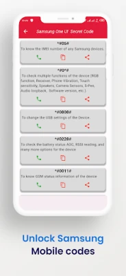Please be aware that this app is independent of Samsung and serves as a third-party service. It offers a platform to access Samsung secret codes for unlocking network-locked devices. This service is not affiliated with Samsung but aims to provide users with the means to unlock their Samsung devices using secret codes!