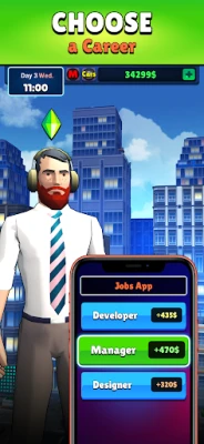 Your story begins with the fact that you graduated from university and want to build a successful life, where difficulties and human temptations await you. In this life simulator, you choose a sim and customize it. You can play as a guy or a girl.