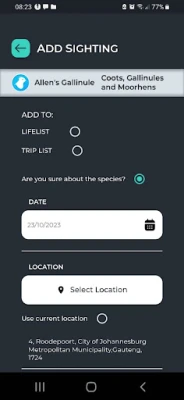 • Keep track of bird sightings in your online life list, allowing you to store the date, location and comments for each sighting.