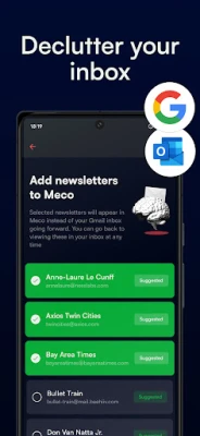 Move newsletters into Meco, a newsletter aggregator specifically built for reading. Connect Gmail or Outlook accounts to instantly add your existing newsletters, freeing your main inbox from clutter. Alternatively, create a new @meco email address, keeping newsletters completely separate from your regular inbox.