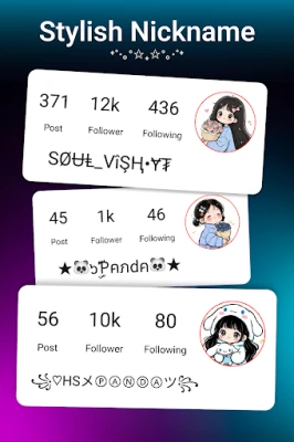 Choose quickly, edit easily, super cool nickname creation - make sure your nickname will be unique, super cool, and make your crush ask for info!