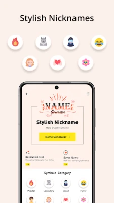 Are you a fan of games? Do you want unique nicknames for your games? How about styling your name or nickname?! Love styling?! With this cool nickname generator app, you can change your name to a cool, stylish name with stylish fonts and best fonts. This free name generator helps in solving the constant problem faced by gamers of 'Nickname is already taken', you can use this game nickname finder and flaunt your name full of stylish fonts and fancy art or just customise your bio with fancy text.