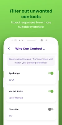 Who Can Contact Me: Allow messages only from those who meet your preferences (age, status, education, etc.)