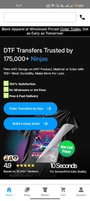 Ninja Transfers is the industry leader in Direct to Film (DTF) Transfers, giving you everything you need to create high-quality custom apparel fast. Easily upload your design and we’ll deliver vibrant, long-lasting transfers that press cleanly onto cotton, polyester, and blends.