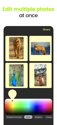 - Automatically selects the best color and gradient for the background. Also you can pick the ones you like from the palette. Or even put a transparent background.