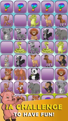 This brain game is for kids and helps to develop intelligence skills and improve the memory while having fun. You have more than 30 beautiful and colorful animal images in three levels of difficulty. With a simple and intuitive interface that makes it easy to use.