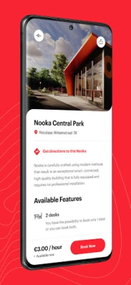 Find and book a Nooka, pay for your stay! Unlock the office, control the heating and lighting, and so much more, all from your phone.