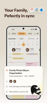 • Shared Calendar: Color-coded and accessible by every family member, with smart reminders and daily agenda summaries, also synced with calendars like Google, Apple, and Outlook.