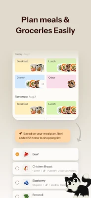 • Automated Shopping List: Once a meal plan is set, Nori automatically breaks down the recipes into ingredients and adds them to your shared shopping list.