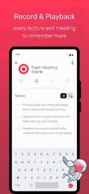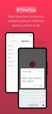 Everything you type is timestamped to the recording; you can also mark important moments using #TimeTags to instantly revisit them during playback with just one tap – no more scrubbing through hours of recording!