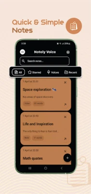 • Filter notes by: Starred, Voice, Recent