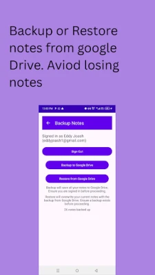 Backups and Restores: Securely backup and restore notes to Google Drive using Google Sign-In. Data is encrypted in transit via HTTPS, stored in your private appDataFolder.