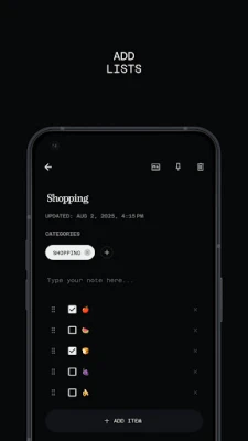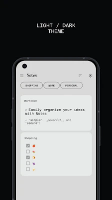 📄 Create notes with text, images, and Markdown formatting. 📌 Organize your notes using custom categories. 🔒 Secure your notes with a password or fingerprint lock. ⚡ Minimalist, distraction-free interface. 🎨 Supports both light and dark themes. 🌎 Available in multiple languages.
