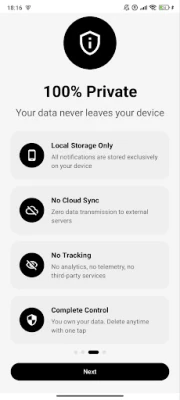 • Private by design: data stored locally; no account, no cloud
