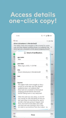 ・Notifications can be stored indefinitely. (It is also possible to set a time limit.) ・Contents can be copied with one click. ・Passcode and biometric authentication available. ・Browsable by application.