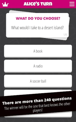 You answer questions about you and then your friends must guess what you answered. Do they know you as much as they think? Do you know them? The winner will be the one that best knows the other players!