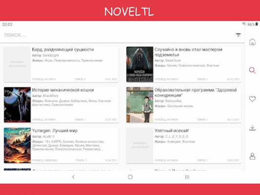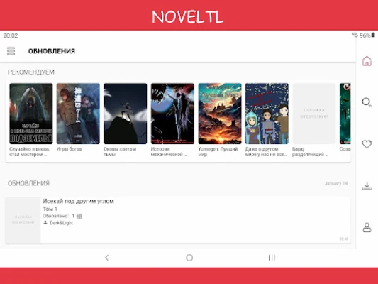 ATTENTION: We have no near future plans to implement English or any other languages but Russian in our applications because almost every light-novel that our resource contain is in Russian.